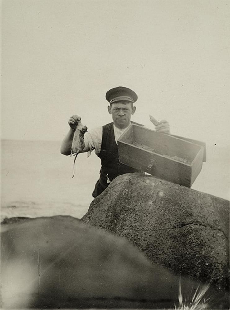 og í hinni heldur hann á dauðri rottu.