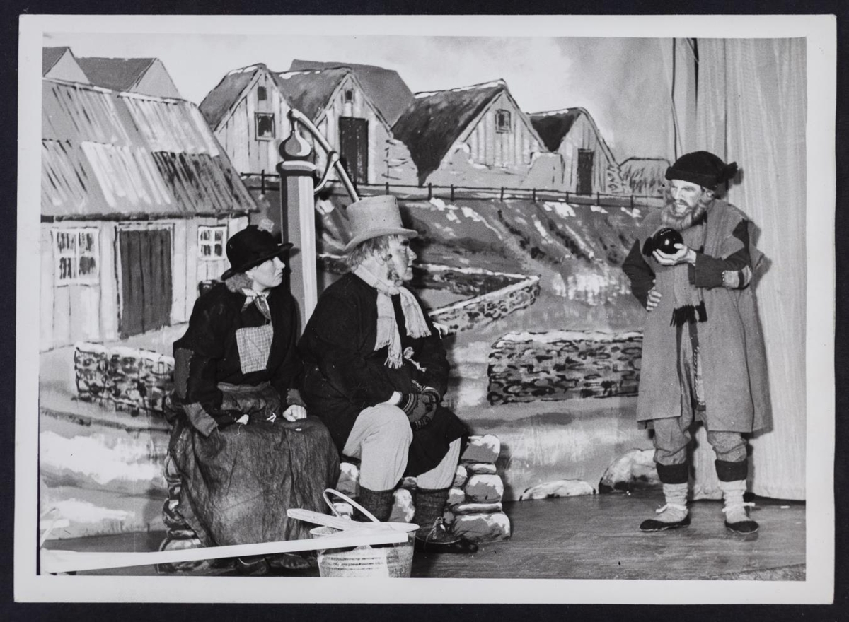 í forgrunni og leikmynd er á bak við. Undir myndinni stendur „Atriði úr