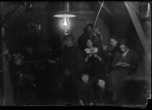 „Talið f.v. Sigurbjörg Gunnarsdóttir, maður með bók við borð trúlega barnakennari, Gunnar Sigurðsson bóndi með barn, Bergljót Stefánsdóttir, stelpa lengst t.h. Sigríður Gunnarsdóttir, nokkur börn bónda o.fl. heimilisfólk.“ (BÞ 2015)