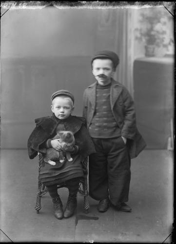 og heldur annar á ketti en hinn er með gerviefrivaraskegg. Gunnar