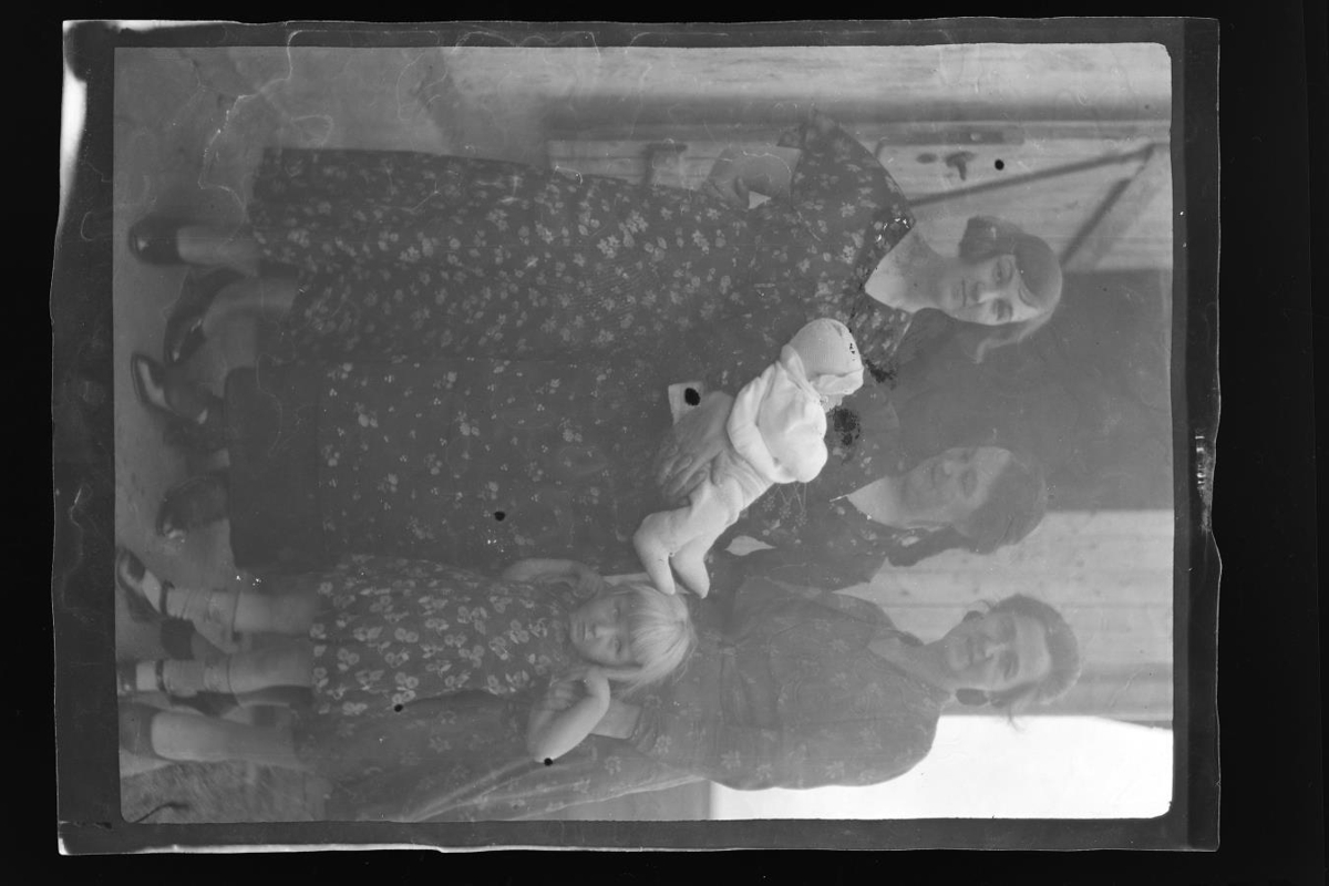 við húsdyr og er ein með barn í fangi. Frá vinstri: Ólöf Briem, Ingibjörg
