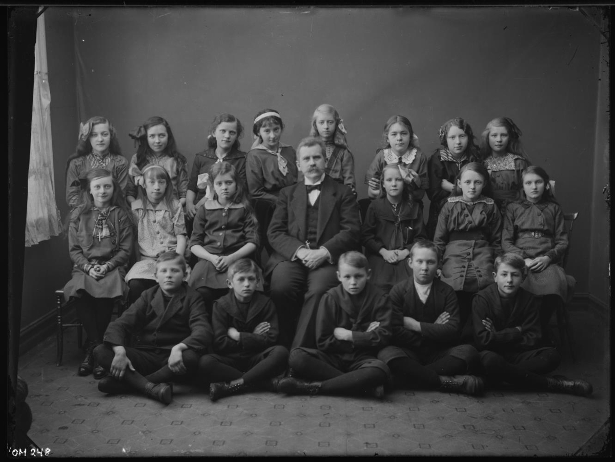 og 14 stelpur uþb. 10-12 ára (10 ng). Kennari: Bjarni Hjaltested (f. 1868)