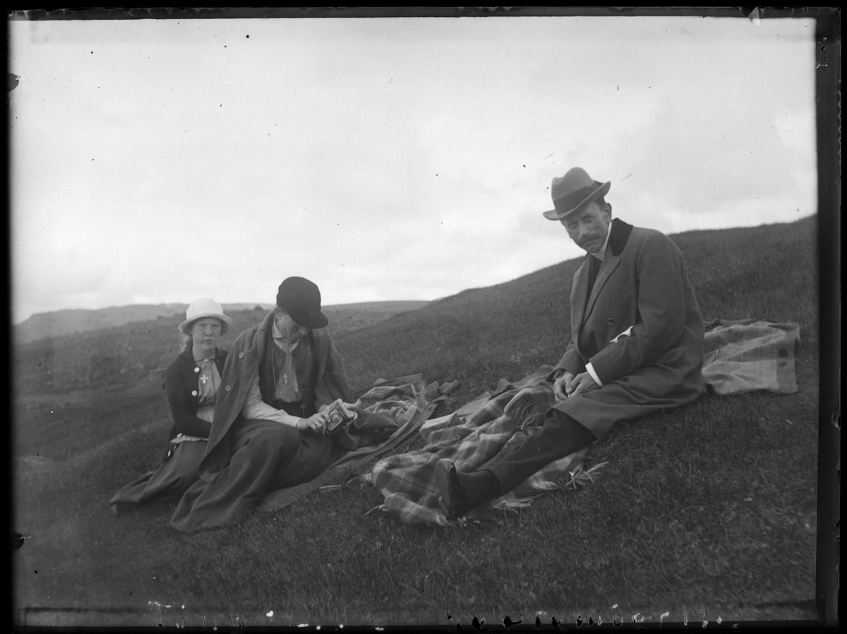 sitja á teppum í brekku. Ferð með Knud Christian símstjóra á Ísafirði og