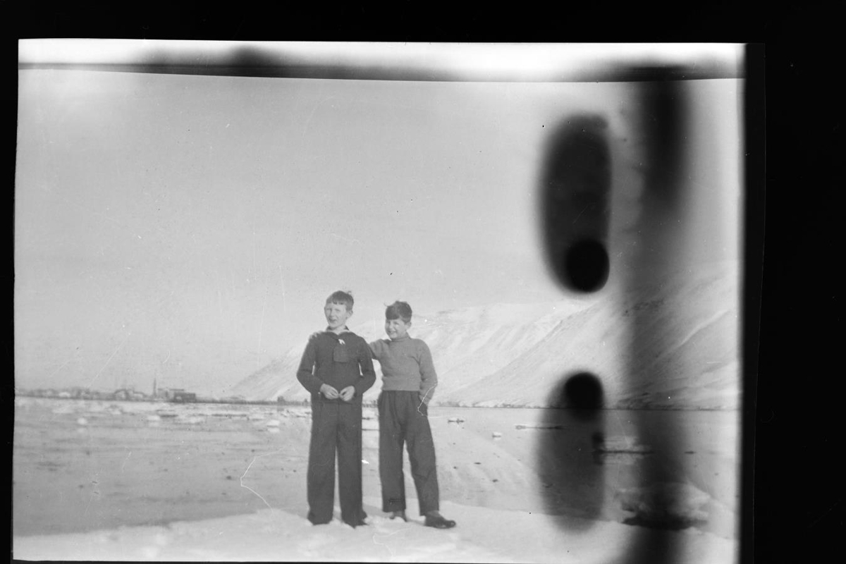 Siglufjörður. Tveir strákar á bryggjusporði.