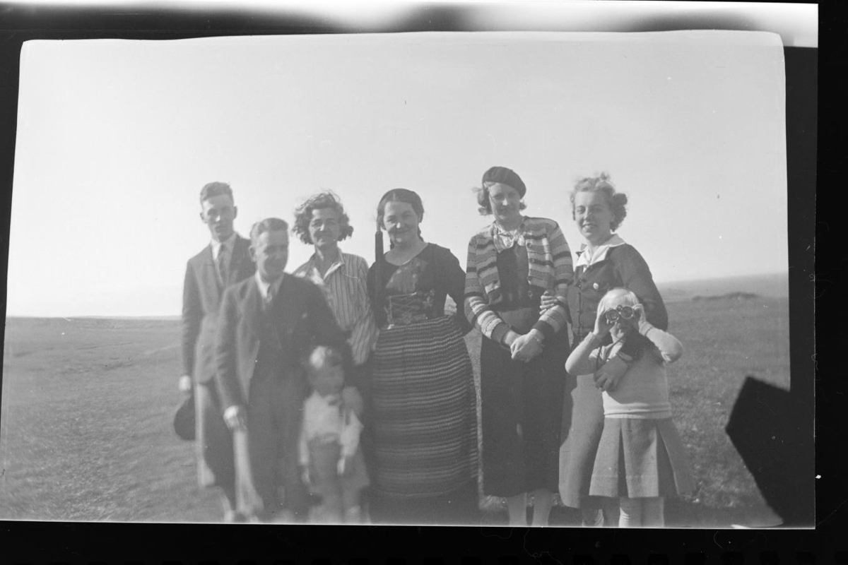 Melstaður. Miðfjörður. Hópur fólks stillt upp til myndatðku. Steinunn kona Nils, Ásta, Ingibjörg Briem, Ólöf, Nils og Ólafur G.