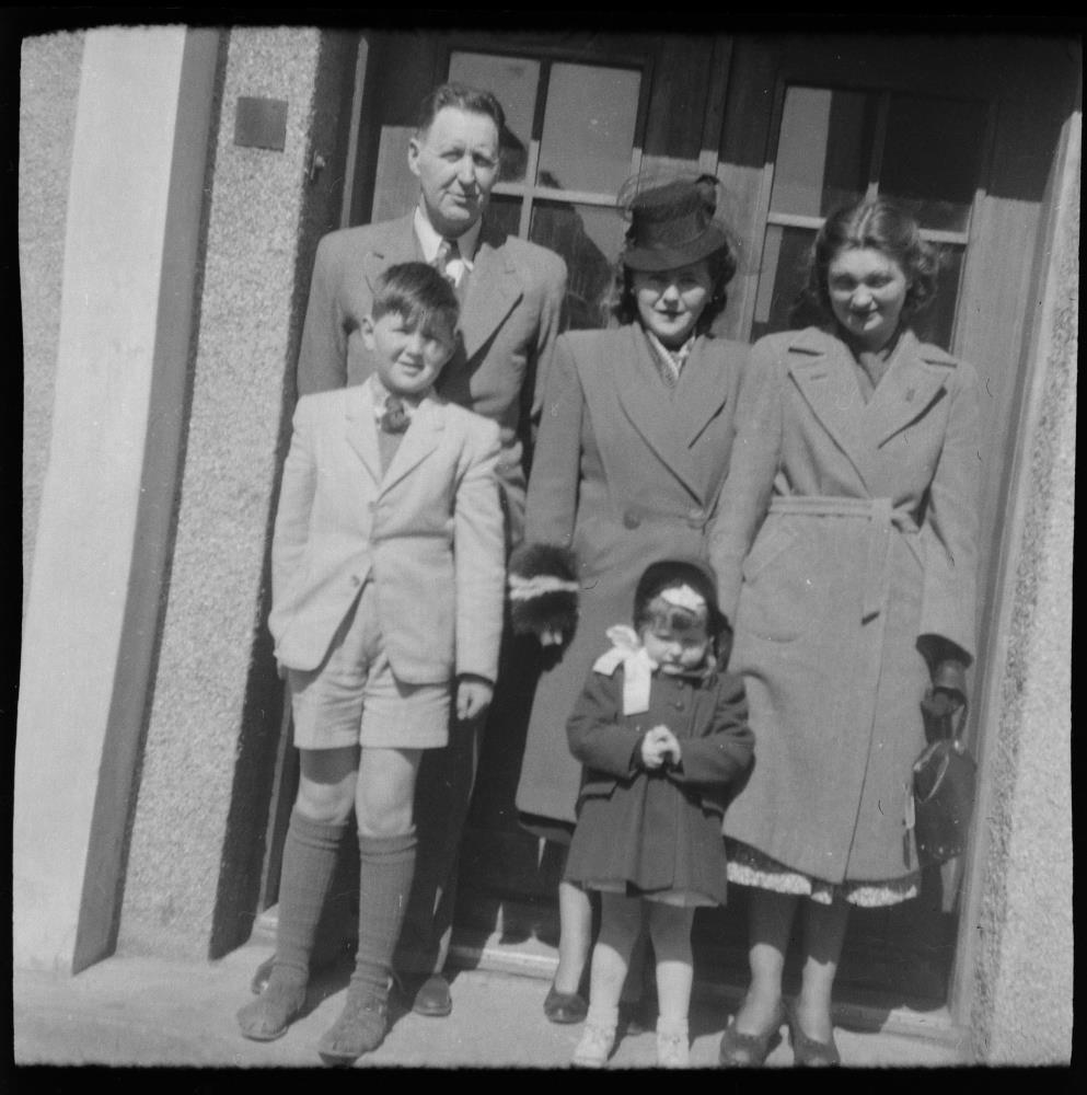 útidyr. Elías Kristjánsson, Randí kona hans, Halldóra Kristjánsdóttir og