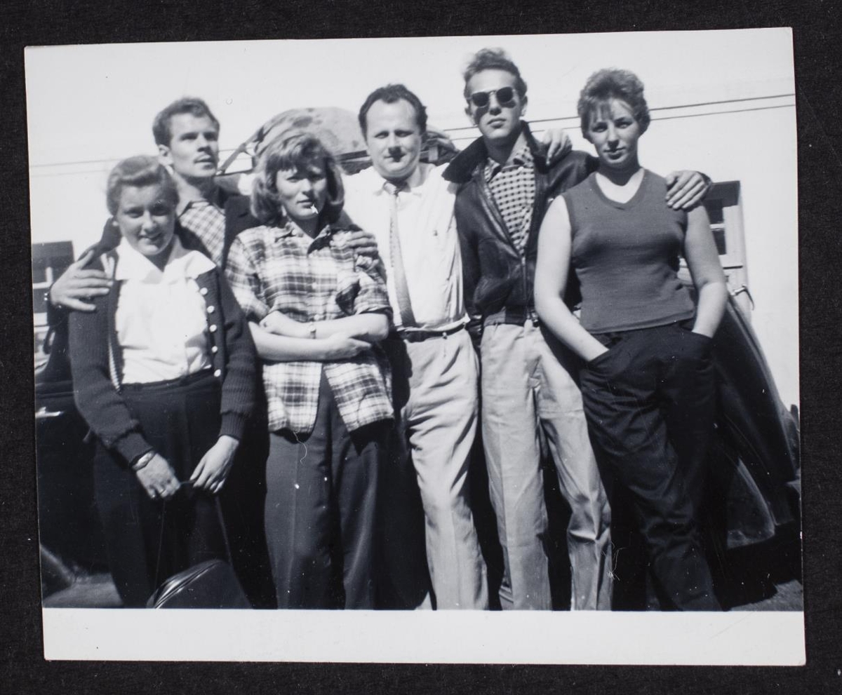 og er einn með sólgleraugu. Myndatexti er „Áður en lagt var upp í ferðina,