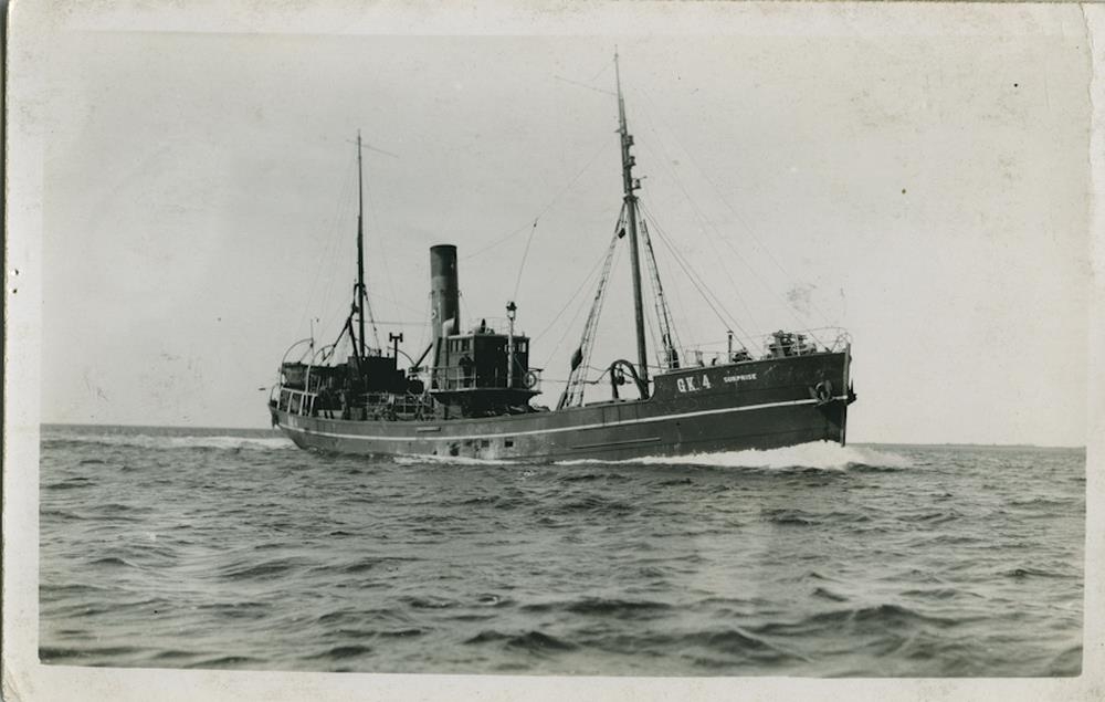 Myndin sýnir síðutogarann Surprise, GK 4, á siglingu úti á rúmsjó.