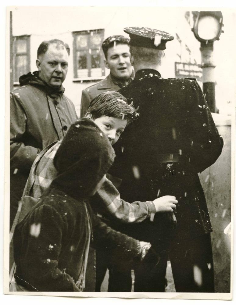 „Þessi mynd er frá Akureyri, þarna sést Haraldur Helgason, lengi kaupfélagsstjóri Kaupfélags Verkamanna og Valgarð Frímann lengi lögregluþjónn á Akureyri. Kannski þekkja einhverjir aðrir hina á myndinni. Gaman að sjá.“ (VÞ 2026)