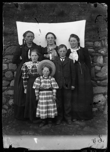 Þrjár konur og þrjú börn. (Sama og 304). Sigurbjörg Gunnarsdóttir á Egilsstöðum lengst t.v. af konunum.