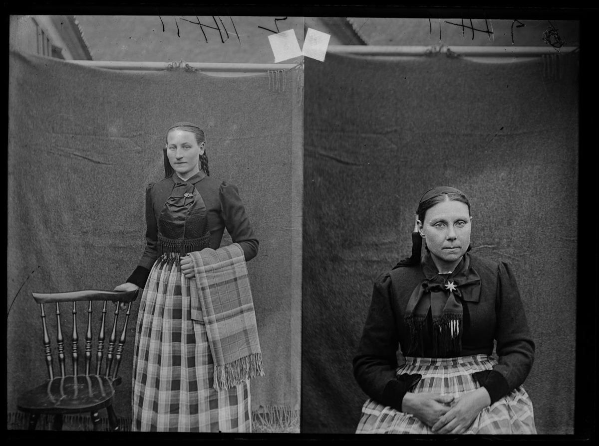 „Konan til hægri er mögulega Guðríður Guðlaugsdóttir (1843-1924) Ættuð frá Ketilsstöðum í Mýrdal. Húsmóðir á Rofum, síðar vinnukona víða í V-Skaft., bjó síðast hjá dóttur sinni í Hafnarfirði. Var á Akureyri, Eyj. 1901. Var í Reykjavík 1910.“ (SBBP 2022)