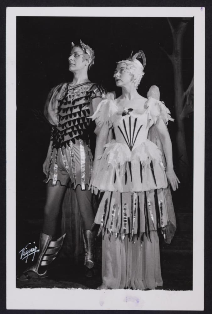 stendur: Oberon (Rúrik Haraldsson) og Titanía (Guðbjörg Þorbjarnardóttir).