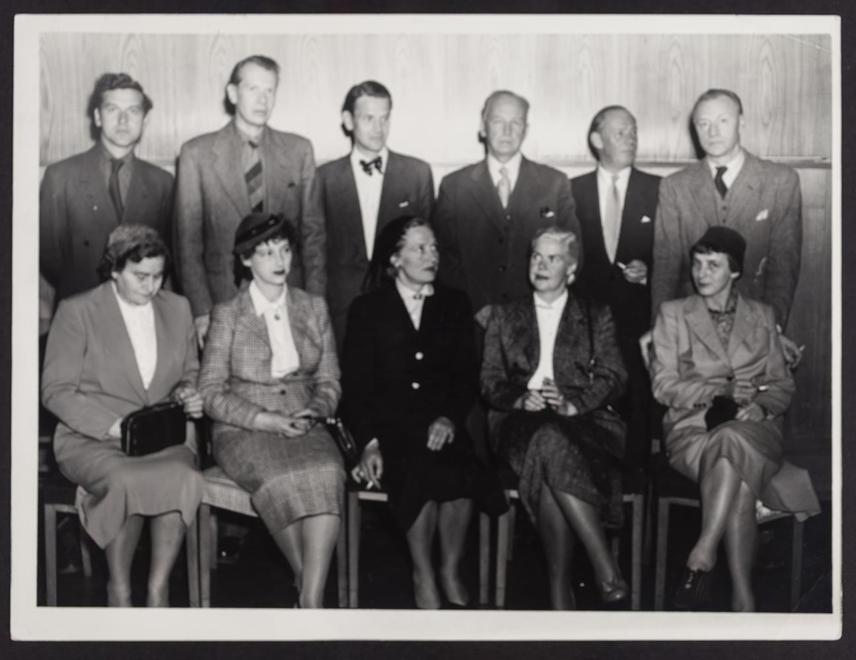 lands. Standandi frá vinstri: Myndhöggvarinn Odd Hilt, málarinn Sigurd