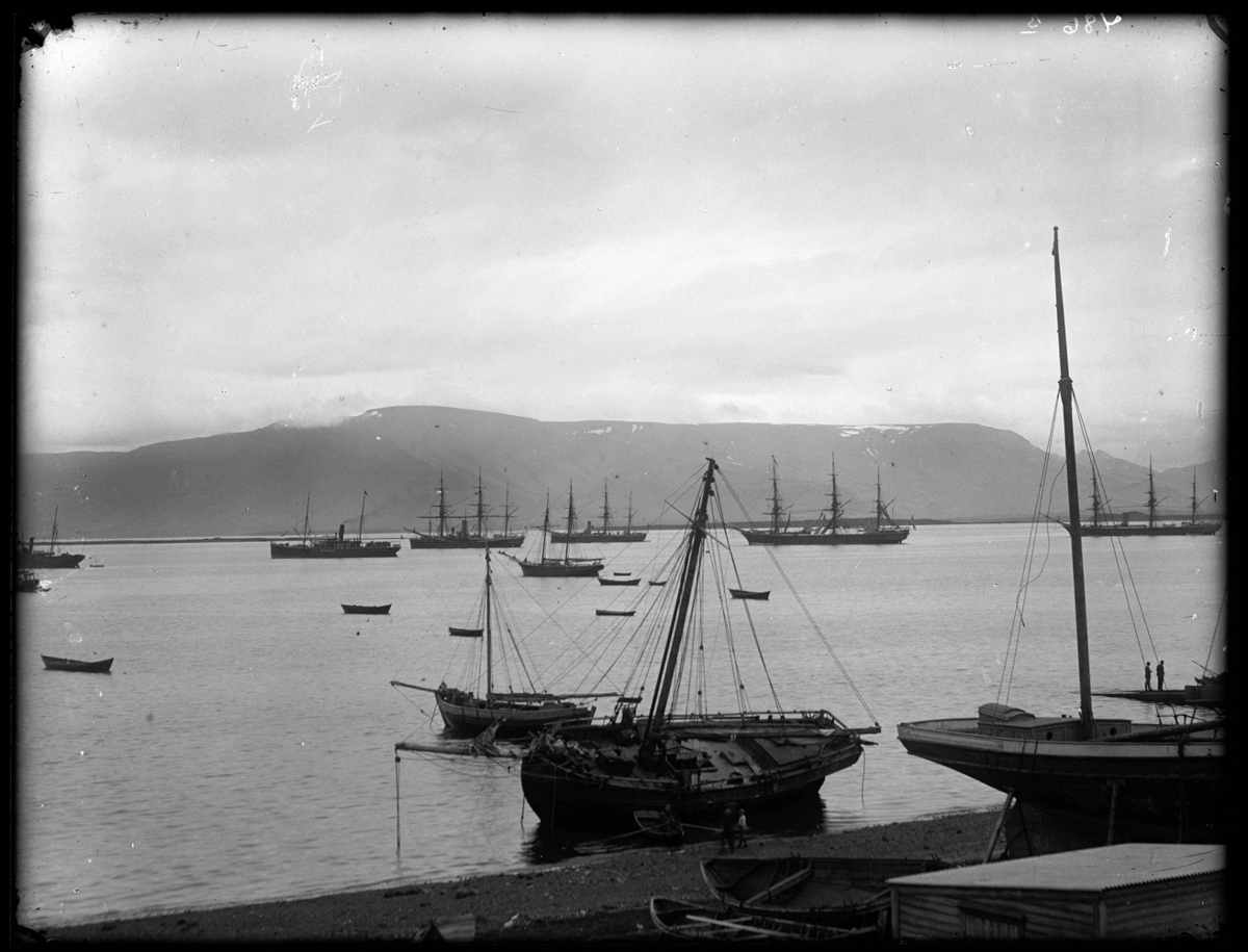 Eitt skipanna er þekkjanlegt eða Botnía, sem gekk á hafnir landsins og var líklega gerð út af Sameinaða gufuskipafélaginu.