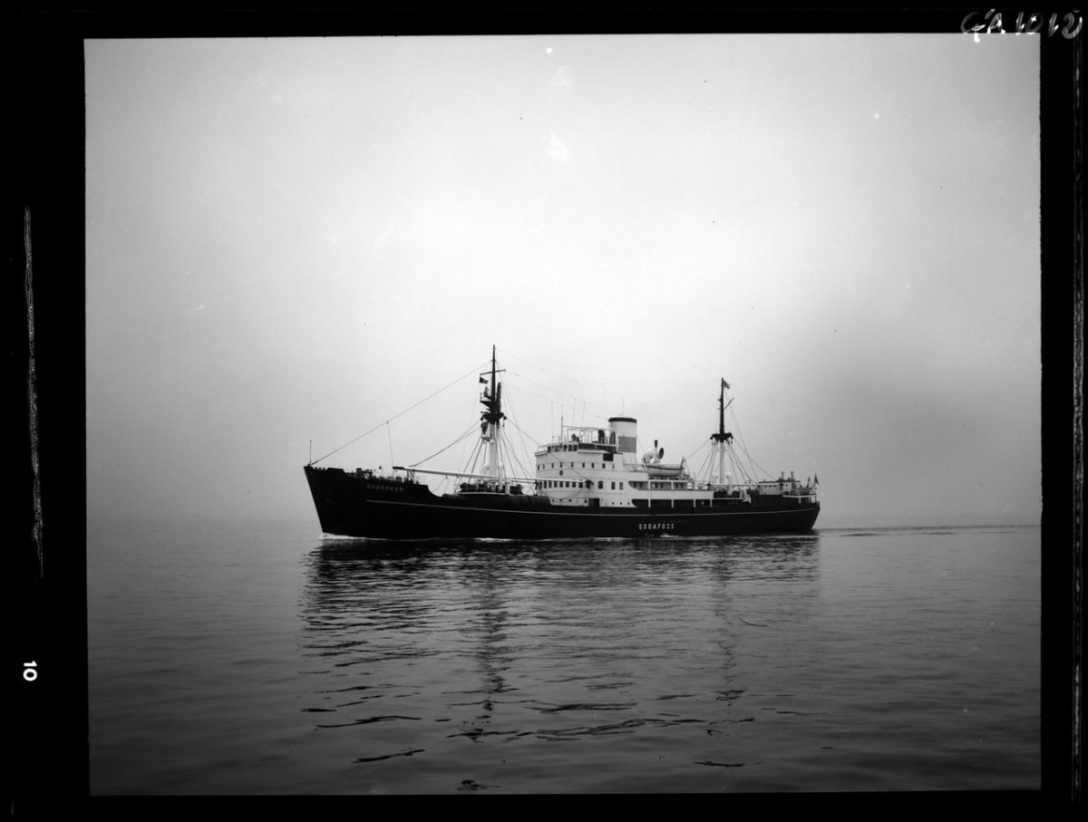 Myndin er tekin á tímabilinu 1948-1950. Tímasetning miðast við komudag Goðafoss til landsins og ennfremur hverning skipið er á litinn. 1948-1950 var Goðafoss svartur á skrokkinn. Jóans Böðvarsson, skipstj., tók við Goðafossi árið 1950 og lét þá mála hann hvítan, en það þótti ekki passa. Skömmu síðar var því skipt um lit á skipinu og það málað grátt og þanning var það eftirleiðis. - G.Á. var á Goðafossi (III) 1948-1958.