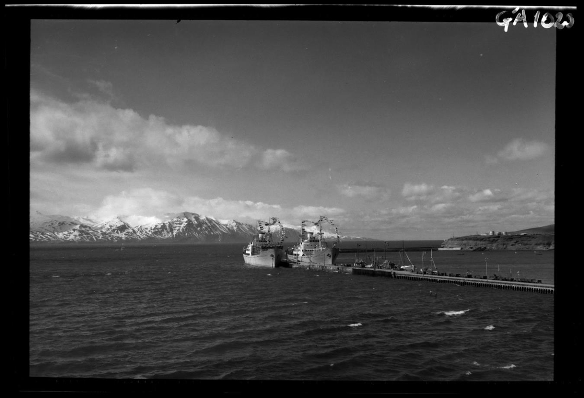 Til vinstri er m.s. GOÐAFOSS (III) og m.s LAGARFOSS (II) til hægri; sbr. nr. 1028 og nr. 1030. Sbr. einnig nr. 1009 og Jón Eiríksson, Skipstjórar og skip, bls. 298.