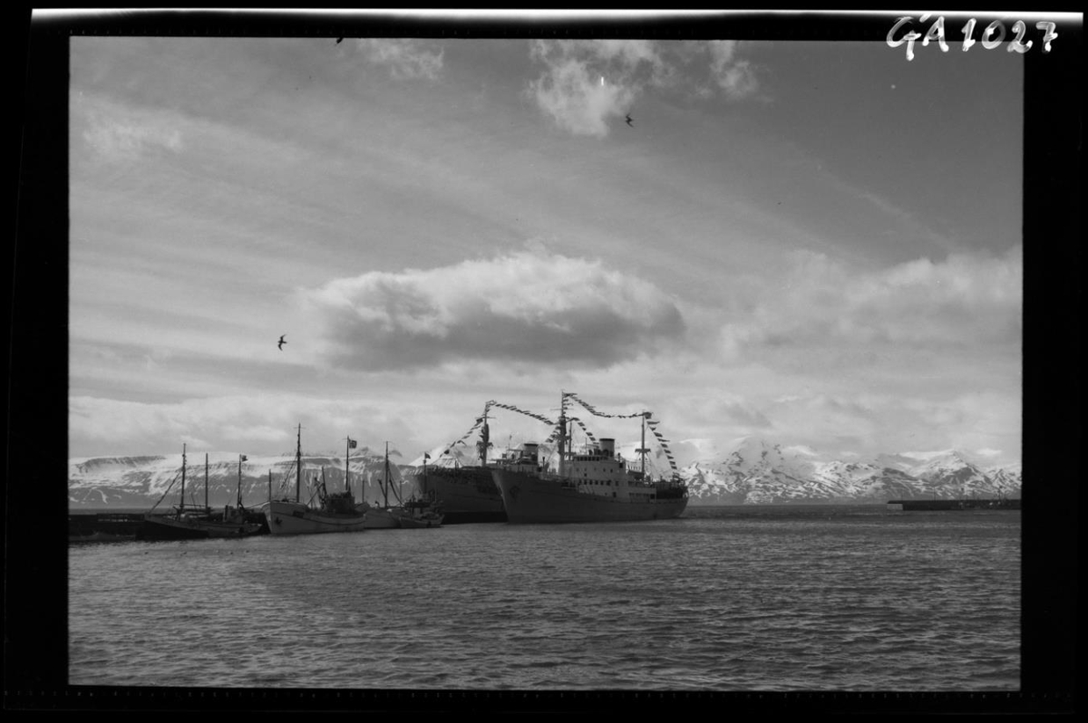 Tekið á sjómannadaginn á Húsavík 1952, sbr. 1022. Kinnarfjöll í baksýn.