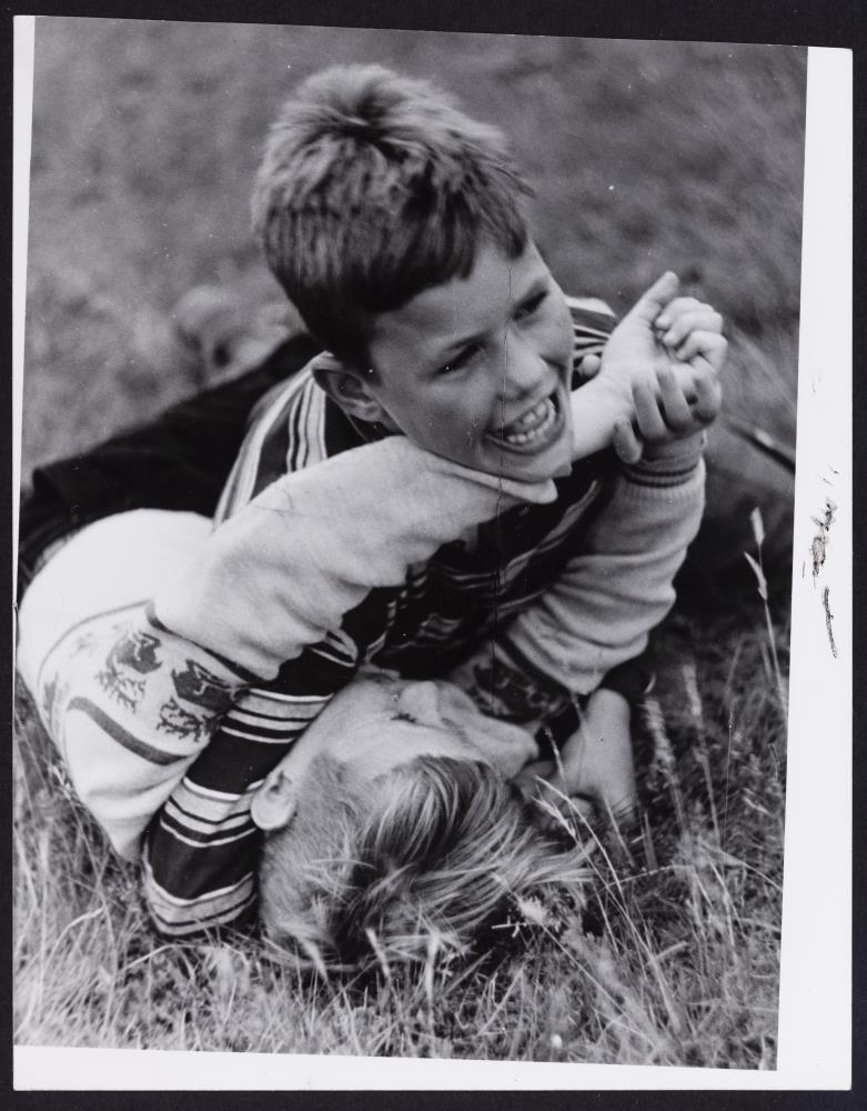 Tveir ungir drengir í slagsmálum.