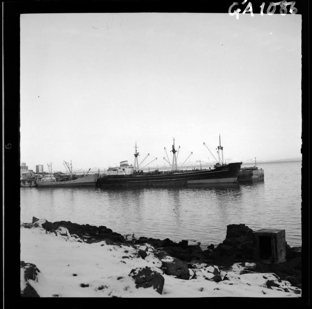 Erlent flutningaskip til vinstri (ekki m.s. Foldin), sbr. Jón Eiríksson, Skipstjórar og skip,bls. 221-268.
