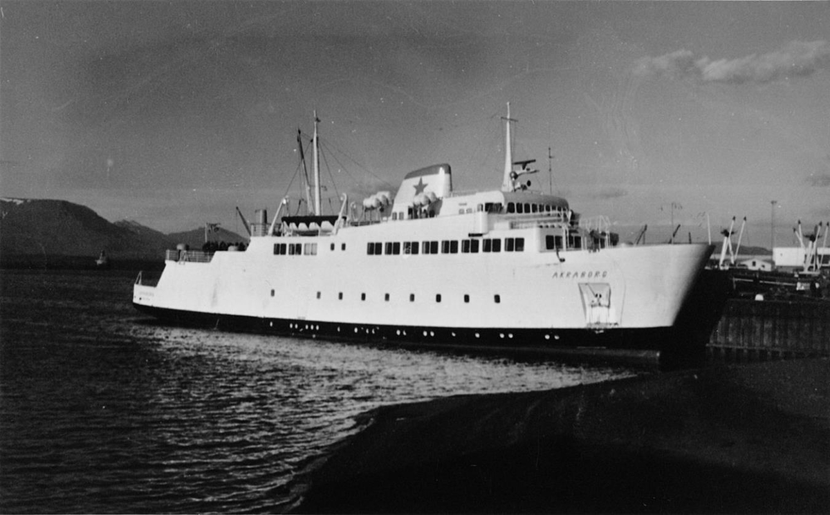 bryggju, á kinnungnum stenfur nafnið AKRABORG.