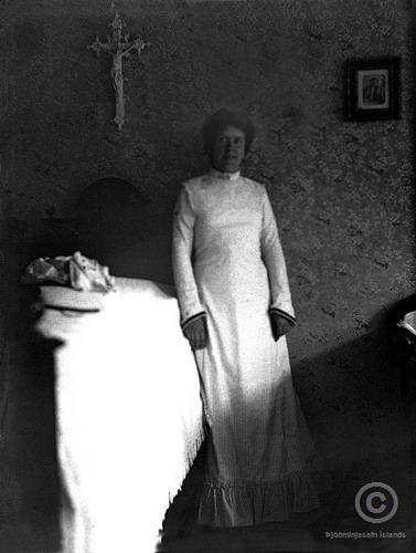 í svefnherbergi. Kross yfir rúminu. Sesselja Thorberg.