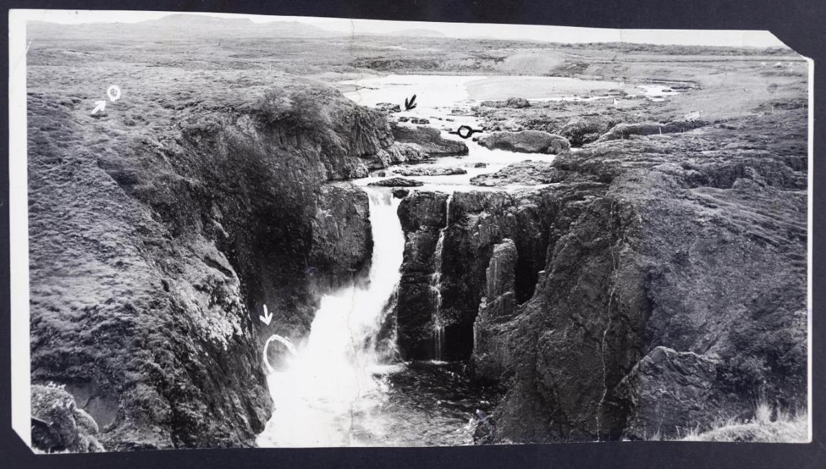 Landslagsmynd, á og foss í ánni.