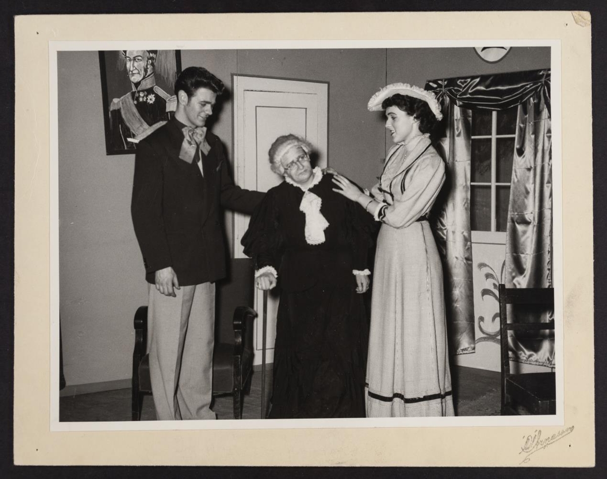 tvær konur í búningum. Yfirskrift greinarinnar með myndinni er: Leikfélag