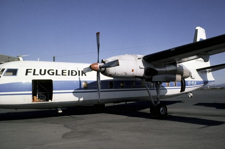 Friendship Flugleiða á Reykjavíkurflugvelli. Myndin tekin á hlið. Hurð
