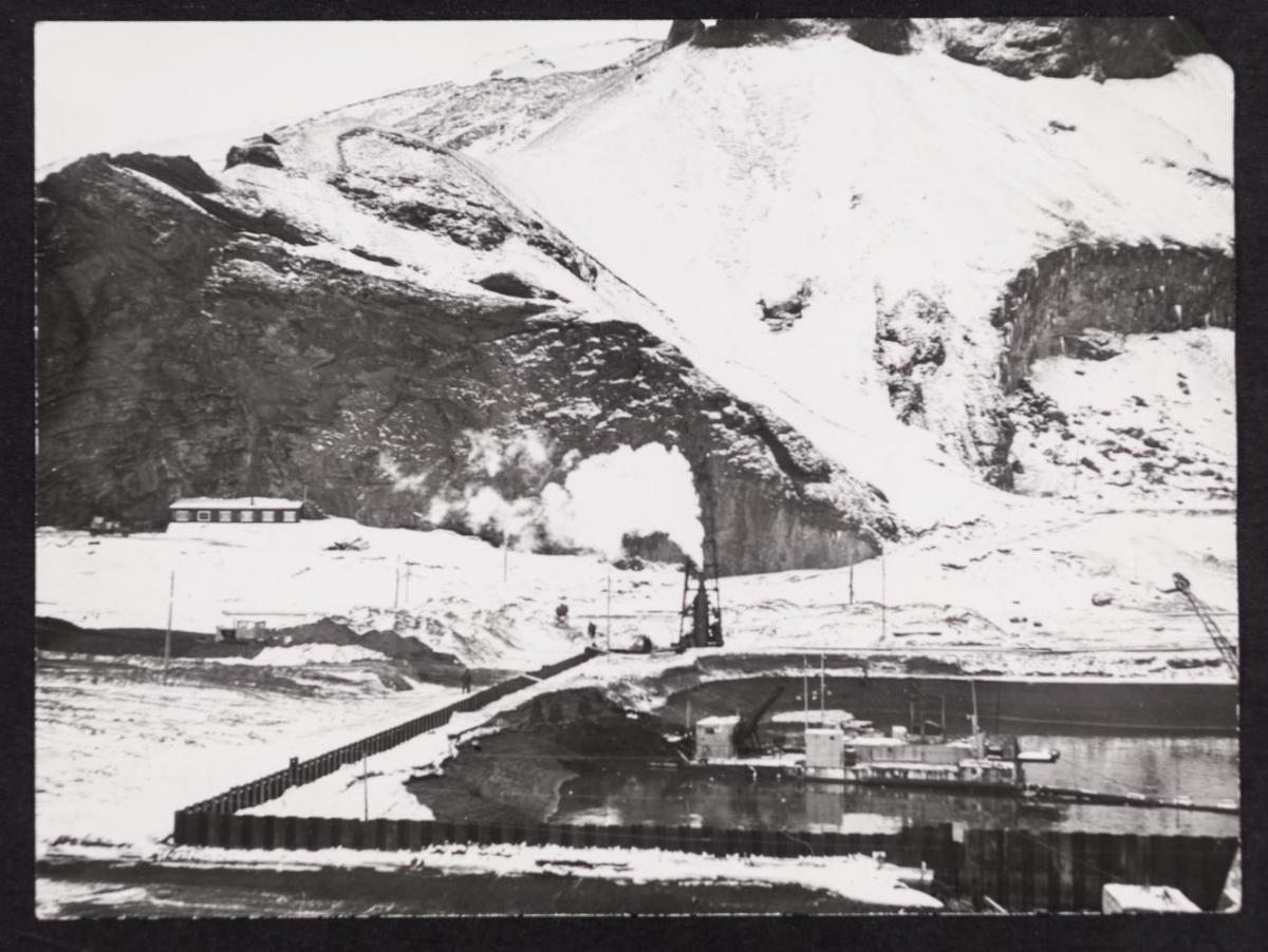 frá járninu, þar sem rammað hefur verið fyrir hinni nýju bátakví innst