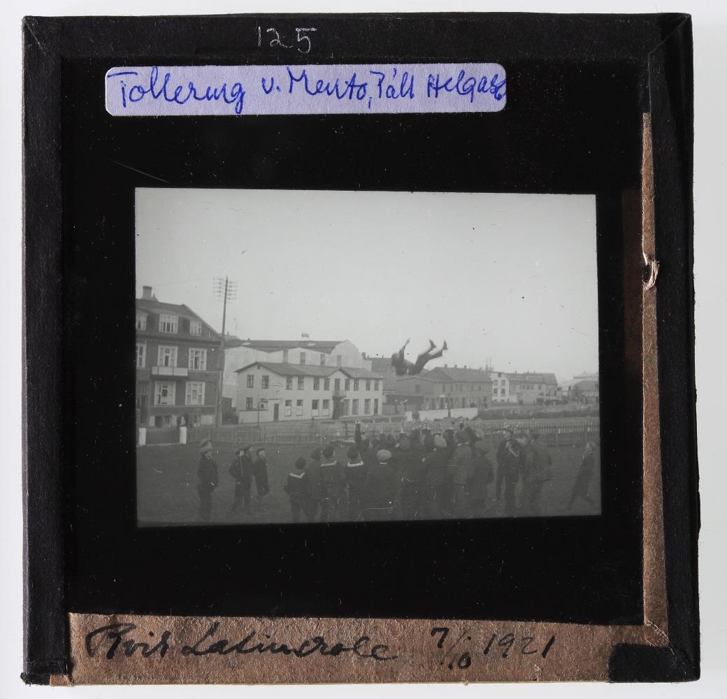 hús við Lækjargötu. Tollering við MR. 7.10.1921. Verið er að tollera Pál