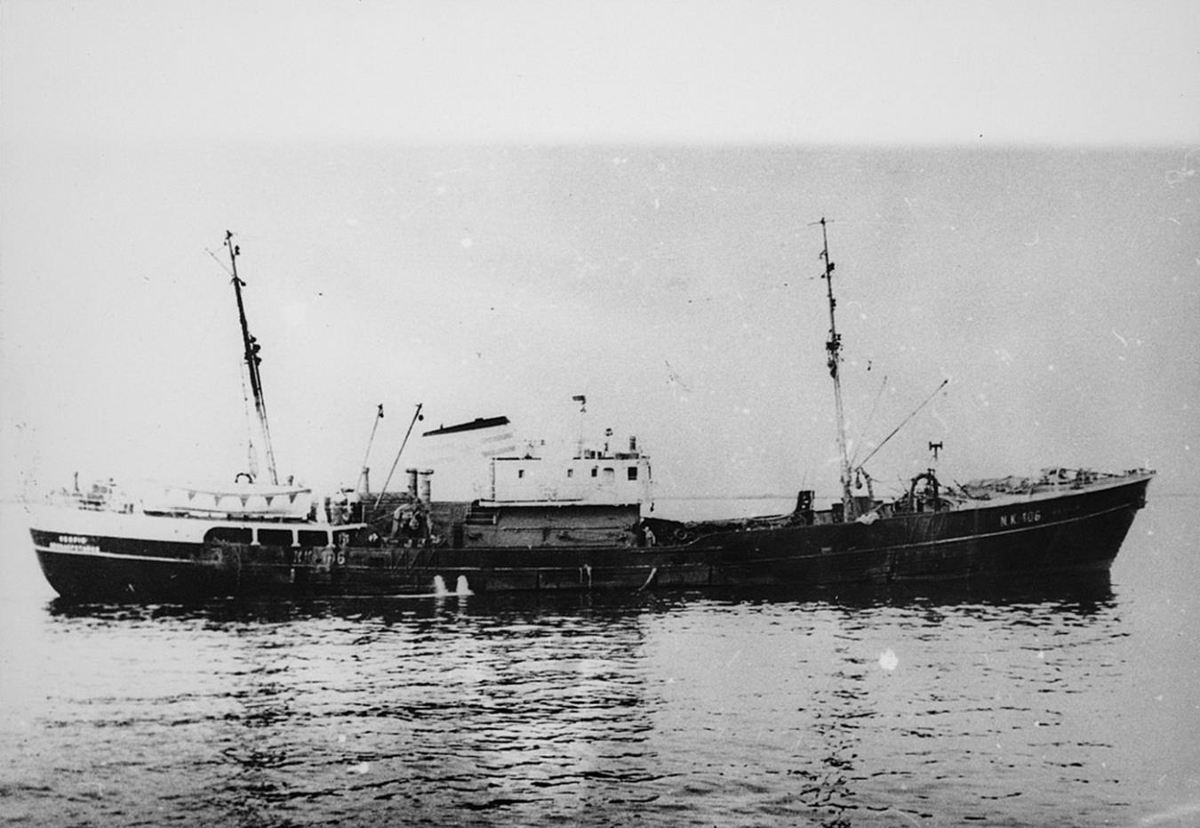 Síðutogari á hægri siglingu. Á