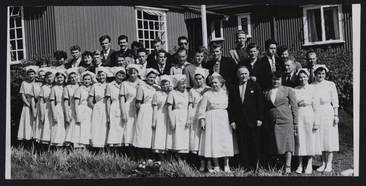 [...] Á myndinni sést allur hópurinn, bæði piltar og stúlkur og skólastjórarnir