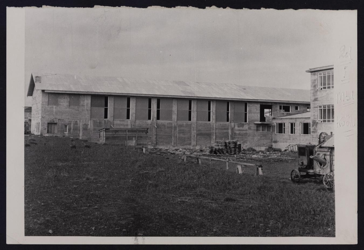 er skrifað: Þetta er nýja íþróttahúsið, sem reist var í sumar. Verður reynt