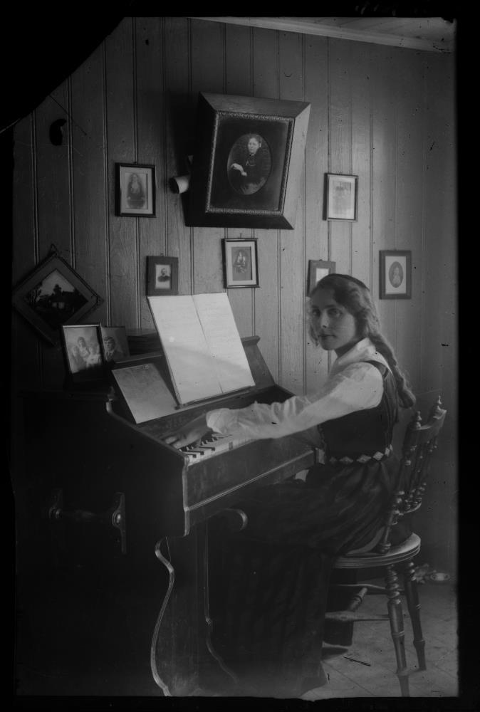 „Mér sýnist að myndin í miðjunni (yfir orgelinu) sé af mömmu Grímheiðar, Jónínu Margréti Gísladóttur (1867-1900). Jónína Margrét var fyrsta kona Páls Grímssonar. Önnur kona hans var Valgerður Hinriksdóttir (1879-1914), og þriðja kona hans var Anna Sveinsdóttir (1896-1967). Grímheiður er langamma Nínu Margrétar Grímsdóttur píanóleikara.“ (ES 2025)