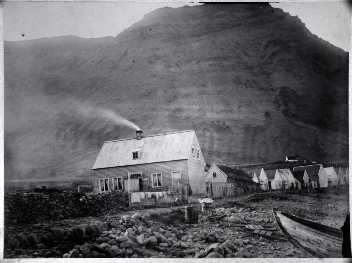 Talið var að þessi mynd væri frá Bolungarvík en athugasemdir hafa borist frá heimamönnum fyrir vestan m að svo sé ekki heldur sé þetta Hnífsdalur Jón Páll Halldórsson sendi mynd tekna af fjalli og afstöðu til staðfestingar. Á myndinni stendur: Prospekt fra Island (laget ved Midnatsolen). Lehmann og Holm.