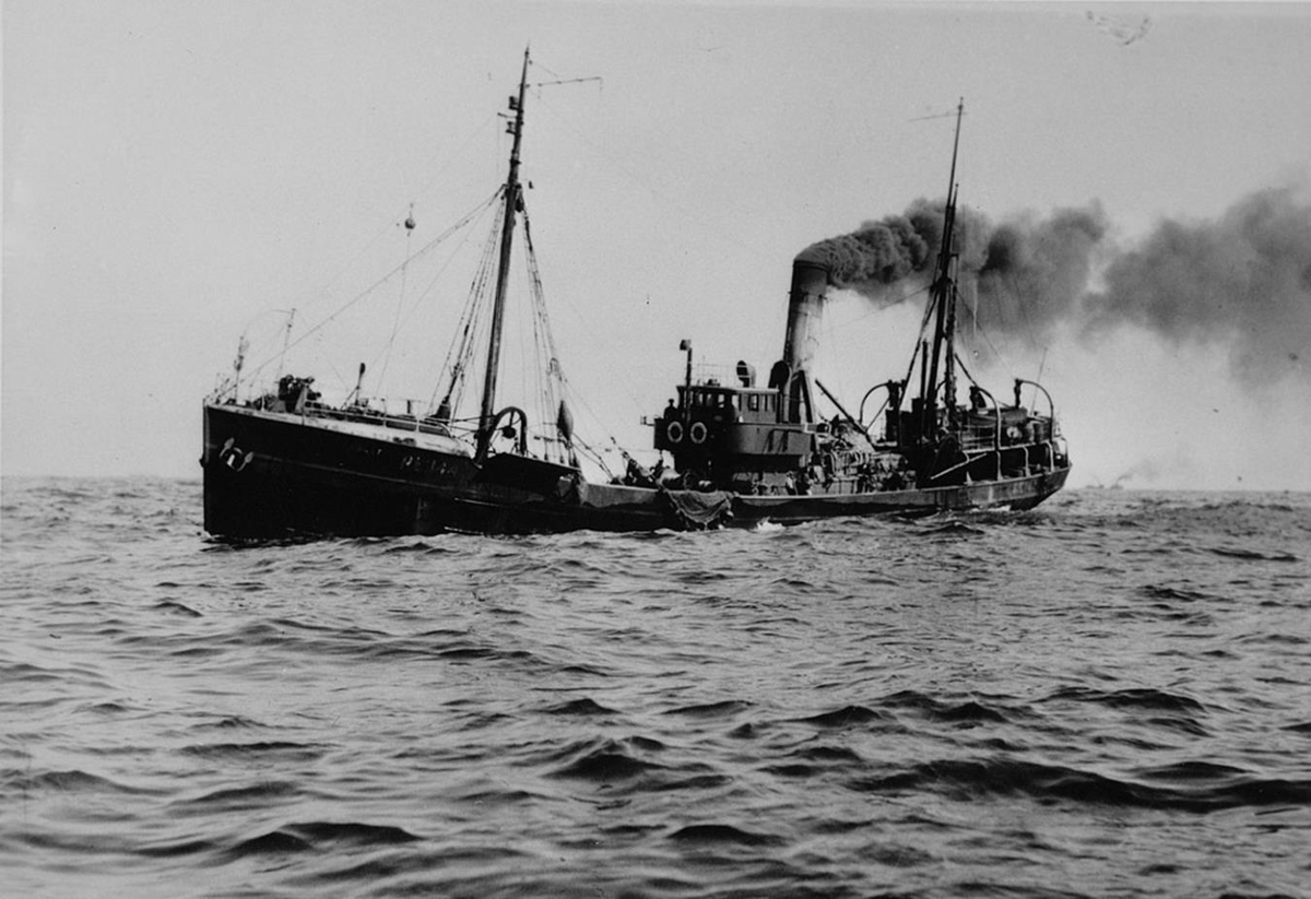 á siglingu á rúmsjó. Á kinnungnum eru stafirnir: RE.144.