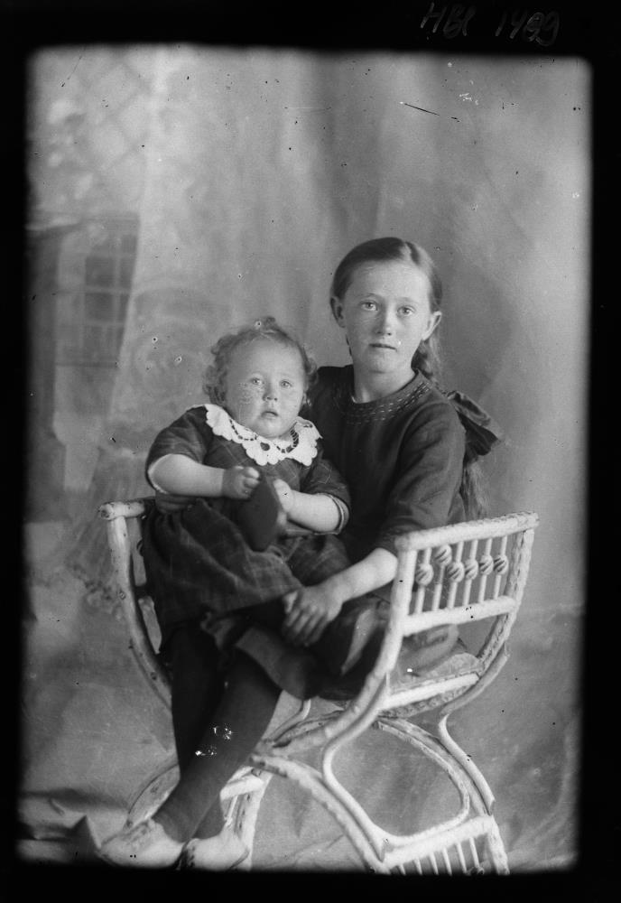 Soffia Vilhjálmsdóttir og frænkan Dúa Ásubergi Eyrarbakka. „Dúa móðursystir mín hét fullu nafni Dagbjört Ólafsdóttir dóttir Guðbjargar Vilhjálmsdóttur og Ólafs Ásgrímssonar (bróður Jóns hómópata Ásgrímssonar). Guðbjörg Vilhjálmsdóttir mamma hennar var alin upp í Óseyrarnesi á ferjustaðnum.Þar bjó Guðbjörg V. ásamt foreldrum sínum Guðbjörgu Jónsdóttur frá Vetleifsholti í Rangárvallasýslu og Vilhjálmi Gíslasyni frá Stóra Hofiog systkinum þar sem faðir hennar var ferjumaður. Þangað kom Ólafur Ásgrímsson pabbi Dúu/Dagbjartar að starfa við ferjuna og þar kynntust foreldrar hennar en fóru að búa í Sandgerði og Keflavík.Á myndinni eru afi og amma Dúu/Dagbjartar flutt frá Óseyrarnesi að Ásabergi og þarna er hún með Soffíu móðursystur sinni. Systir Dúu, (mamma mín) Hallveig Ólafsdóttir var síðan alin upp hjá ömmu þeirra og afa á Ásabergi eftir að pabbi þeirra drukknaði á vertíða á Siglufirði.“ (JÓ 2022)