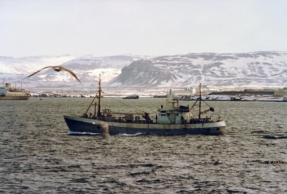 siglingu, á kinnung má sjá stafina: EA 330; í baksýn t.v. sér í afturhluta