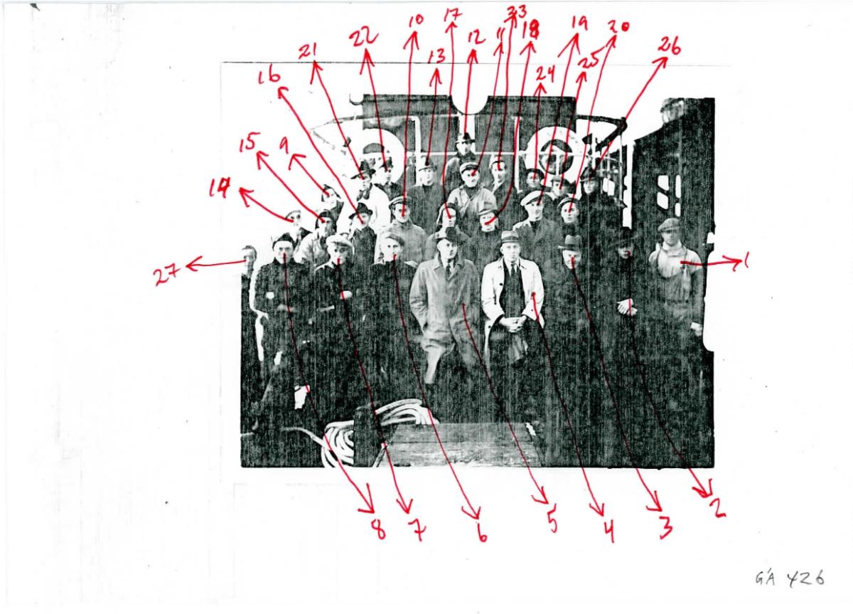 Þessi mynd birtist upphaflega í bók Vilhjálms Þ. Gíslasonar "Sjómannasaga" (Rv. 1945), bls. 581. Mun hún hafa verið tekin gagngert fyrir þessa bók. Sennilega árið 1944. Í vissum tilfellum er nafnaskrá þar röng.