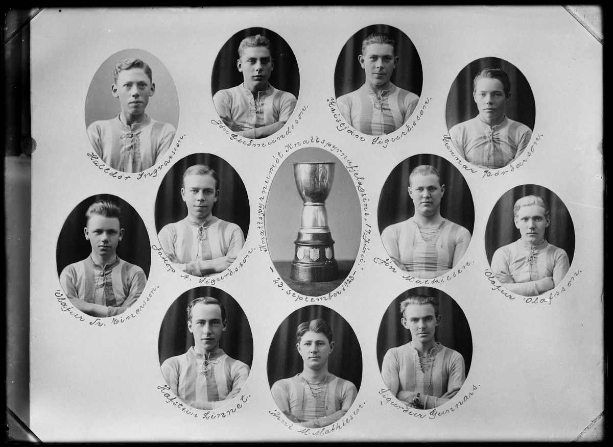 Gunnars. Utanum bikarmyndina stendur Knattspyrnumót Knattspyrnufjelagsins,