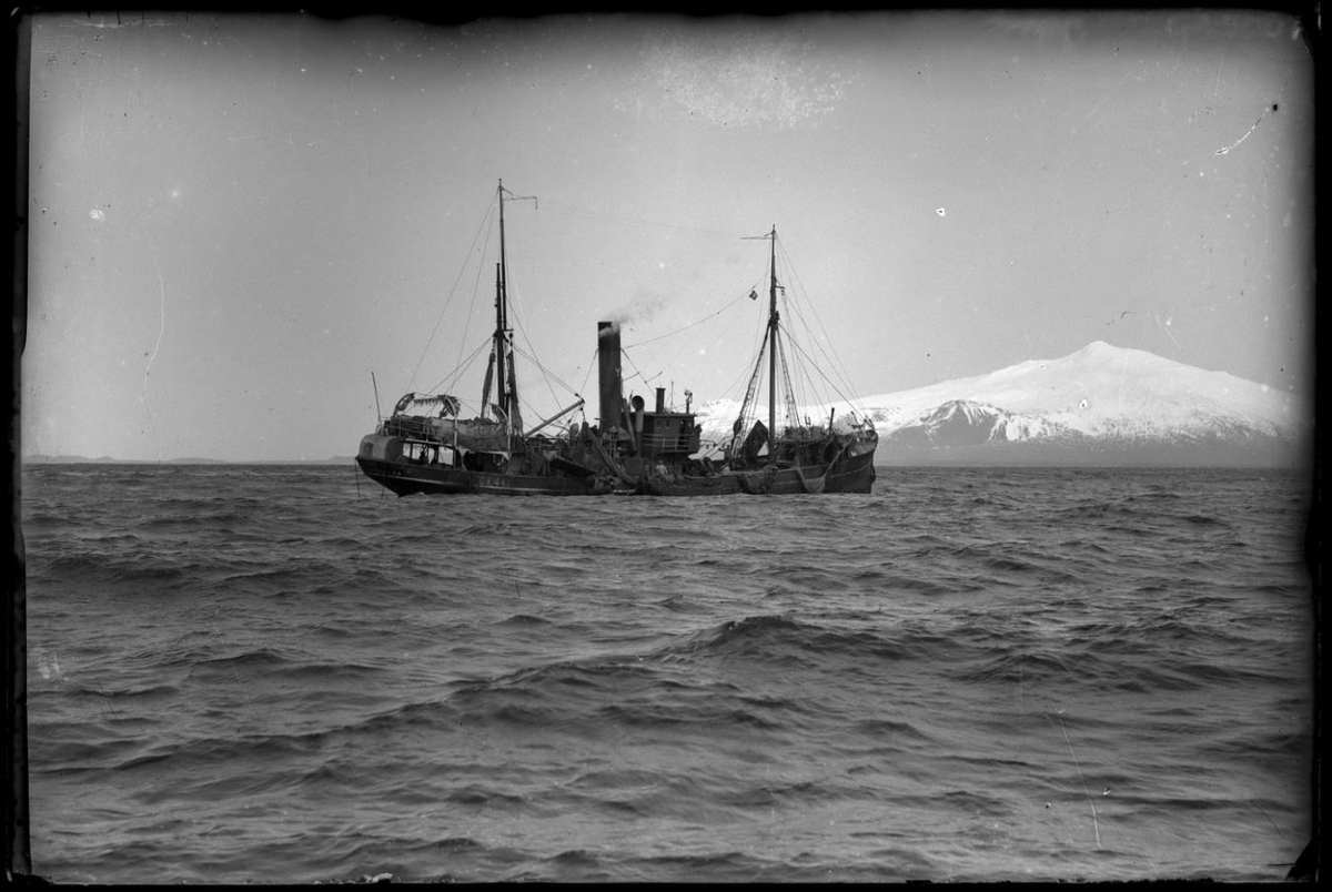 „Myndin er tekin í fyrsta lagi 1925, (skipið er komið með loftskeytatæki), og skipið bar skráninarnúmerið GK 448 til 1932. Sést eitthvað af nafninu eða skortsteinsmerkinu? 1928 hét skipið Eldey en síðustu 4 árin Þorgeir Skorargeir.“ „Y á skorsteininum og ef vel er að gáð má sjá Ymir á skutnum, svo myndin er tekin 1925-28.“ (BÞ 2017)