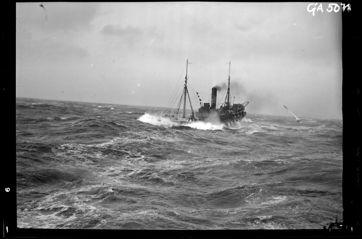 Skipið er VENUS GK 519 (gamli). Myndin er þekkt. Skipið er með skýli á brúarþaki, en aftast á bátadekki er björgunarfleki sem tekur af allan vafa um hvenær myndin er tekin.