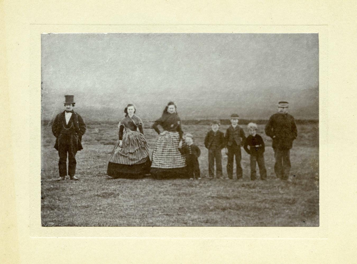 „Jón Thoroddsen, sýslumaður og skáld, og kona hans, Kristín Ólína Þorvaldsdóttir Sívertsen Thoroddsen, og synir þeirra, Þorvaldur, Sigurður, Þórður og Skúli. Þá er þarna dóttir Jóns, Elín. Og svo óþekktur maður.“ (RB 2023)