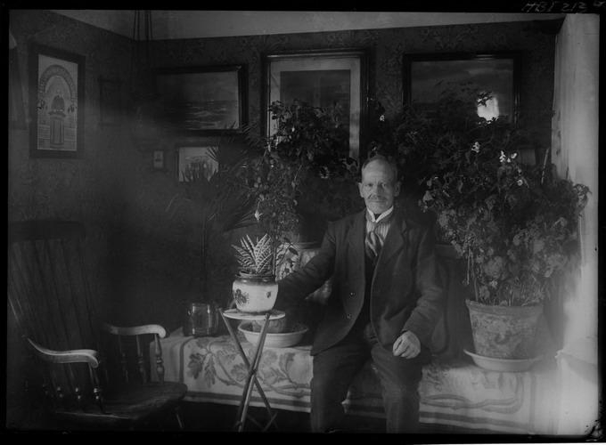 Jón Jónsson bakari á heimili sínu á Eyrarbakka.