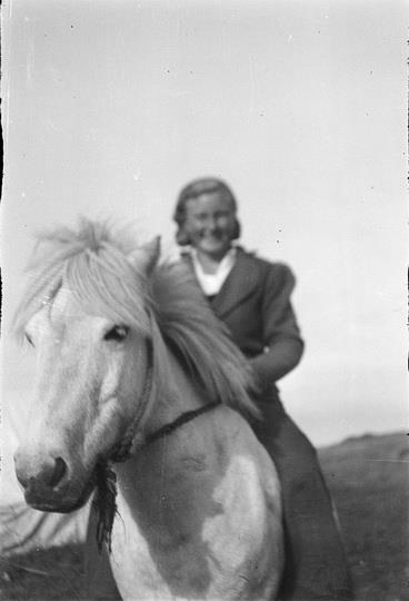 Ung kona á hesti. Filma 6x9.