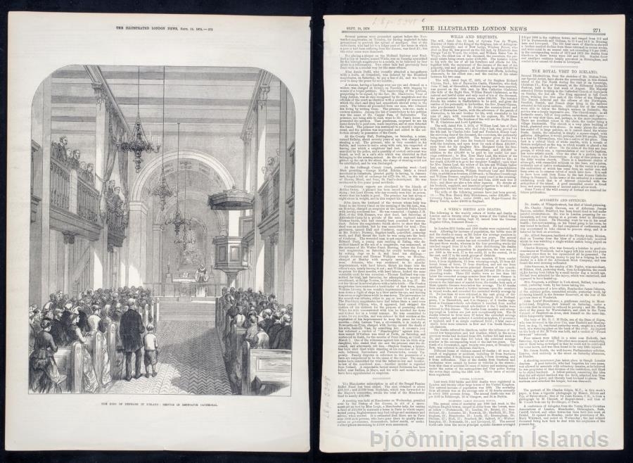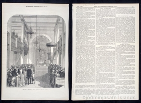 Prentmynd (xylografi), blaðstærð um 40 x 28 cm., blað úr the Illustrated London News 19. sept. 1874: Þjóðhátíðarmessa í Reykjavíkur-dómkirkju 1874.