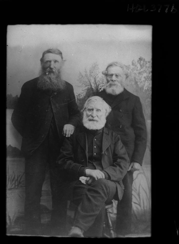 Eftirtaka. Jakob Hálfdánarson kaupfélagsstjóri Húsavík og Pétur Gíslason. „Sitjandi er Pétur Jónsson 18.4.1818-5.10.1906 bóndi í Reykjahlíð Mývatn, sonur séra Jóns Þorsteinssonar forföður Reykjahlíðarættarinnar. Pétur var tengdafaðir Jakobs sem var kvæntur Petrínu Kristínu, sjá líka HBI-377-a.“ (SJÞ 2021)