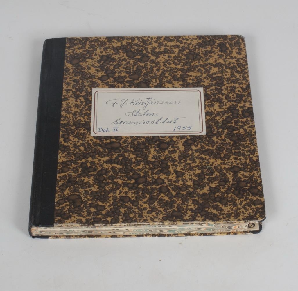 Á bókinni stendur: "G. J. Kristjánsson. Statens Seruminstitut. Bók II 1955"
