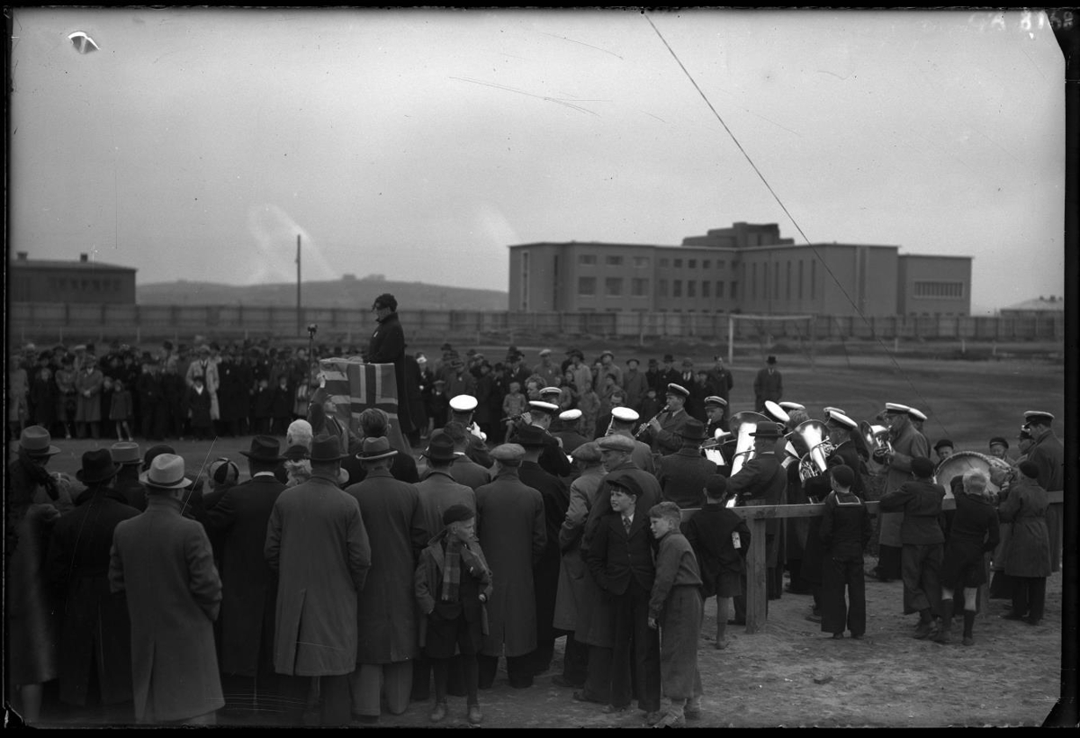 Frá minningar- og útisamkomu á Íþróttavellinum (á Melunum) á sjómannadaginn 6. júní 1943. Útvarpað var frá athöfninni sem hófst kl. 14.00. ( Skv. gjörðabók Sjómannadagsins 1937-1978,bls. 73).