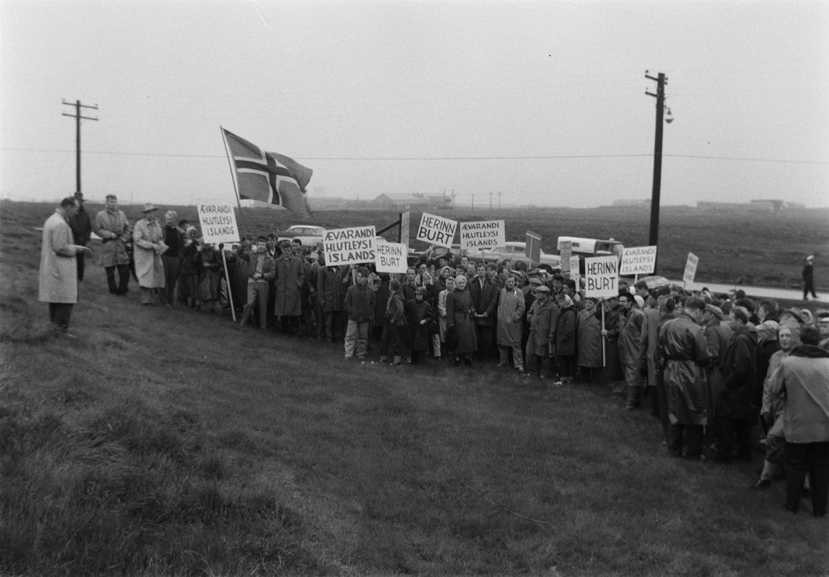 Maður að halda ræðu á við upphaf Keflavíkurgöngu.